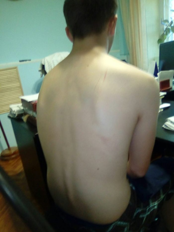 Матери Даниила Романова удалось пронести в полицию телефон. Спина парня в синяках и гематомах